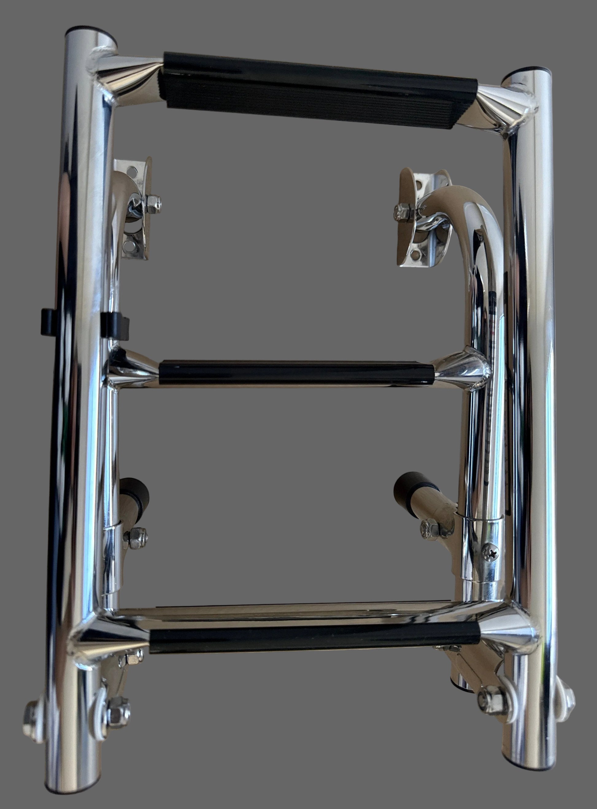• Polished stainless steel 3 step folding boarding ladder. Designed to mount on the transom or horizontal surface.