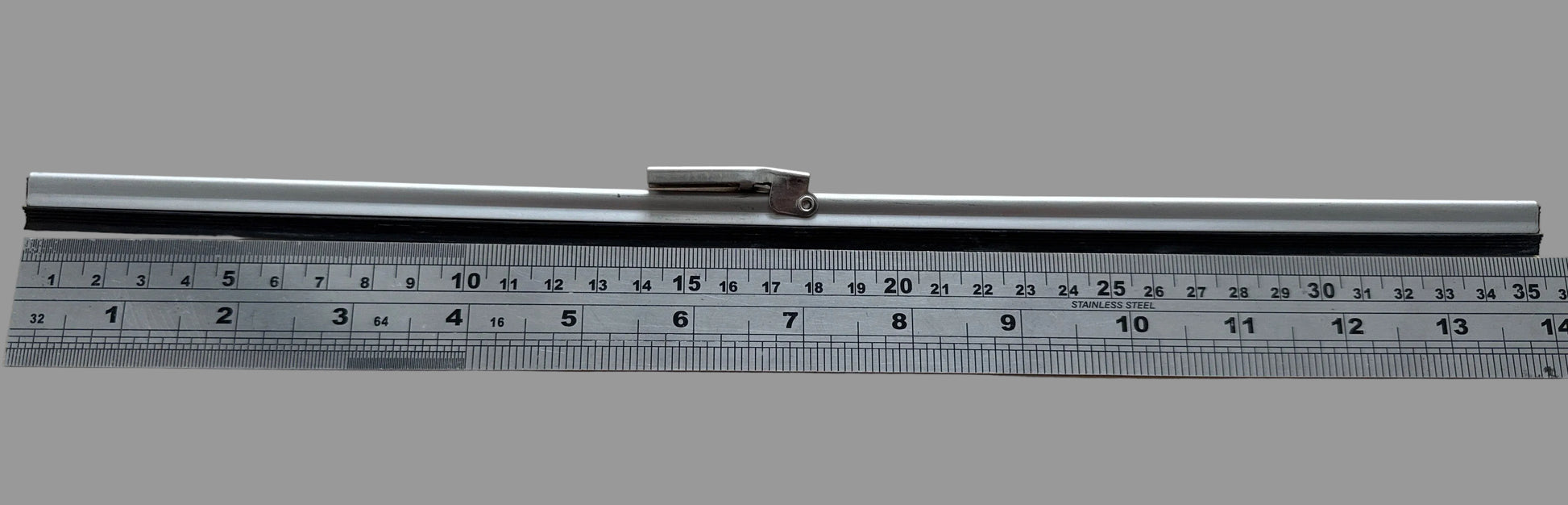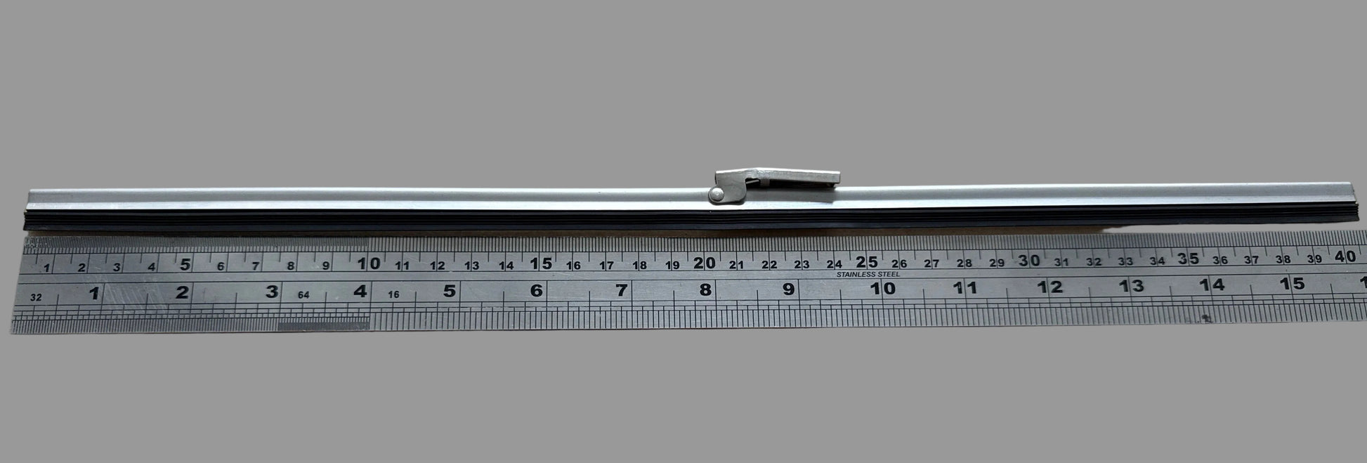 Stainless steel and rubber wiper blade that clips onto bolt on arm.